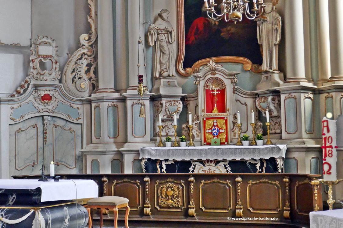 Der Chorraum wird durch den Hochaltar abgeschlossen. Dessen beherrschendes Element ist das zentrale Ölgemälde von Anton Joseph Stratmann (* 1734, † 1807)