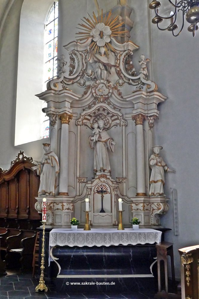 Bild 3: Der rechte Seitenaltar ist eine Stiftung des Vikars Johann Jodokus Albert Brandenburg (* 1720, † 1792) aus dem Jahr 1785 und ist als Antoniusaltar gestaltet.