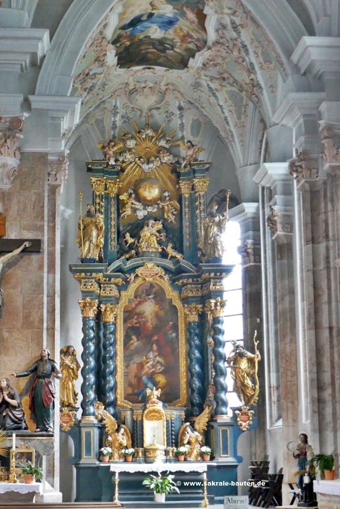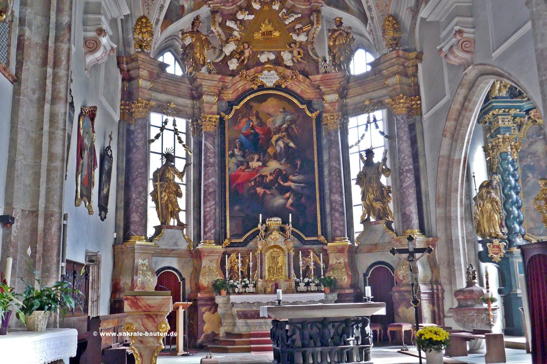 Der Annenaltar mit reichem Figurenschmuck im südlichen Chorraum stammt von dem Mondseer Bildschnitzer Meinrad Guggenbichler,