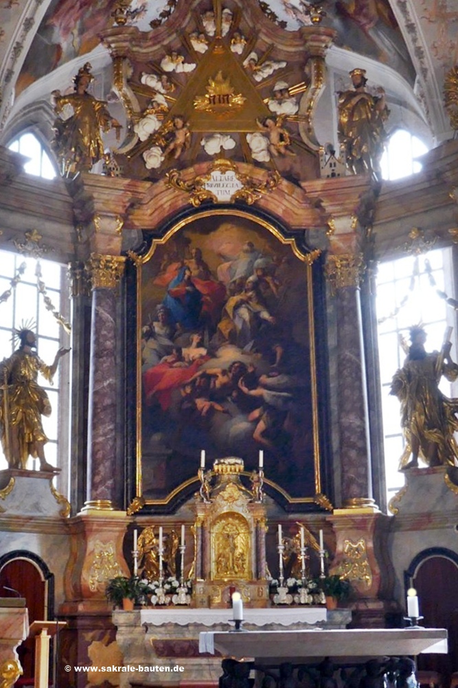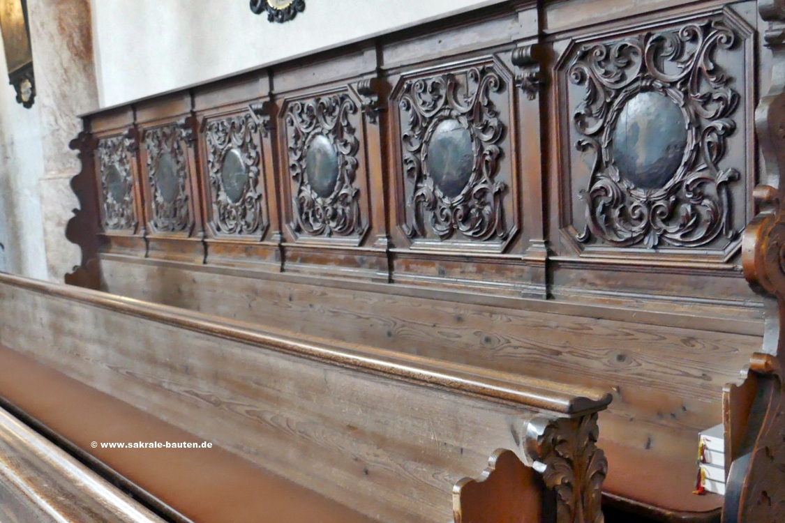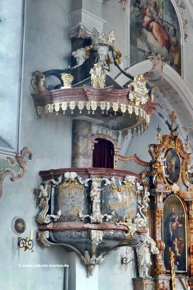 Als Künstler der um 1730 errichteten, mit Akanthuszierwerk und Putti geschmückten Kanzel gilt der auch am Deckenstuck beteiligte ANTON GIGL.