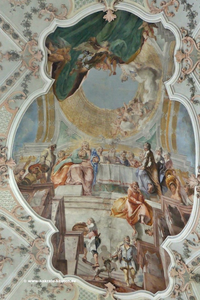 Fresko ( 1737 ) von Matthäus Günther mit Darstellung des letzten Abendmahls.