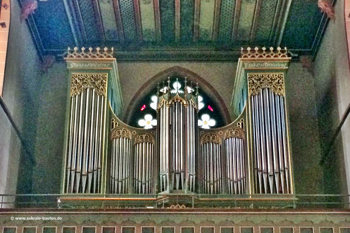 Das Schleifladen-Instrument hat 30 Register auf zwei Manualwerken und Pedal. Die Spieltraktur ist mechanisch, die Registertraktur elektrisch.
