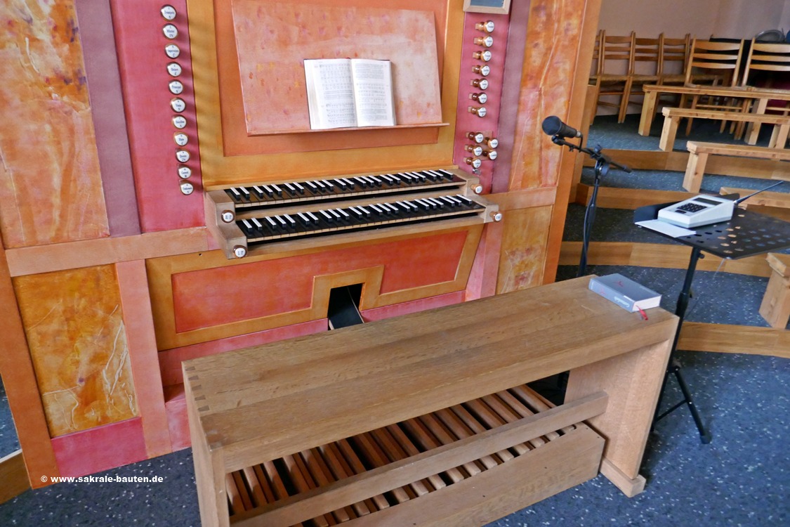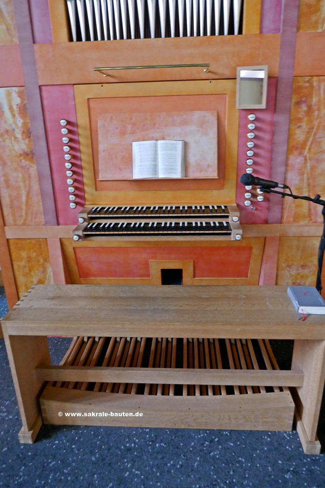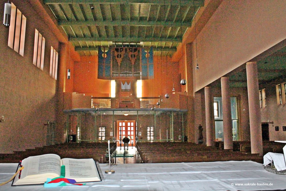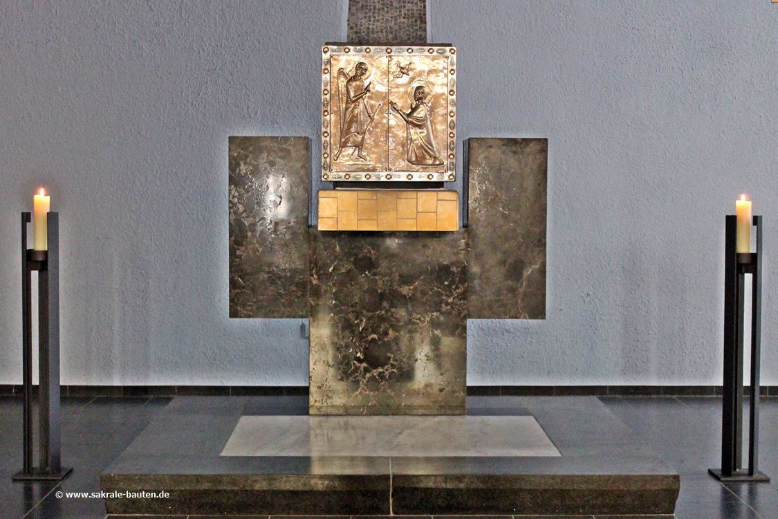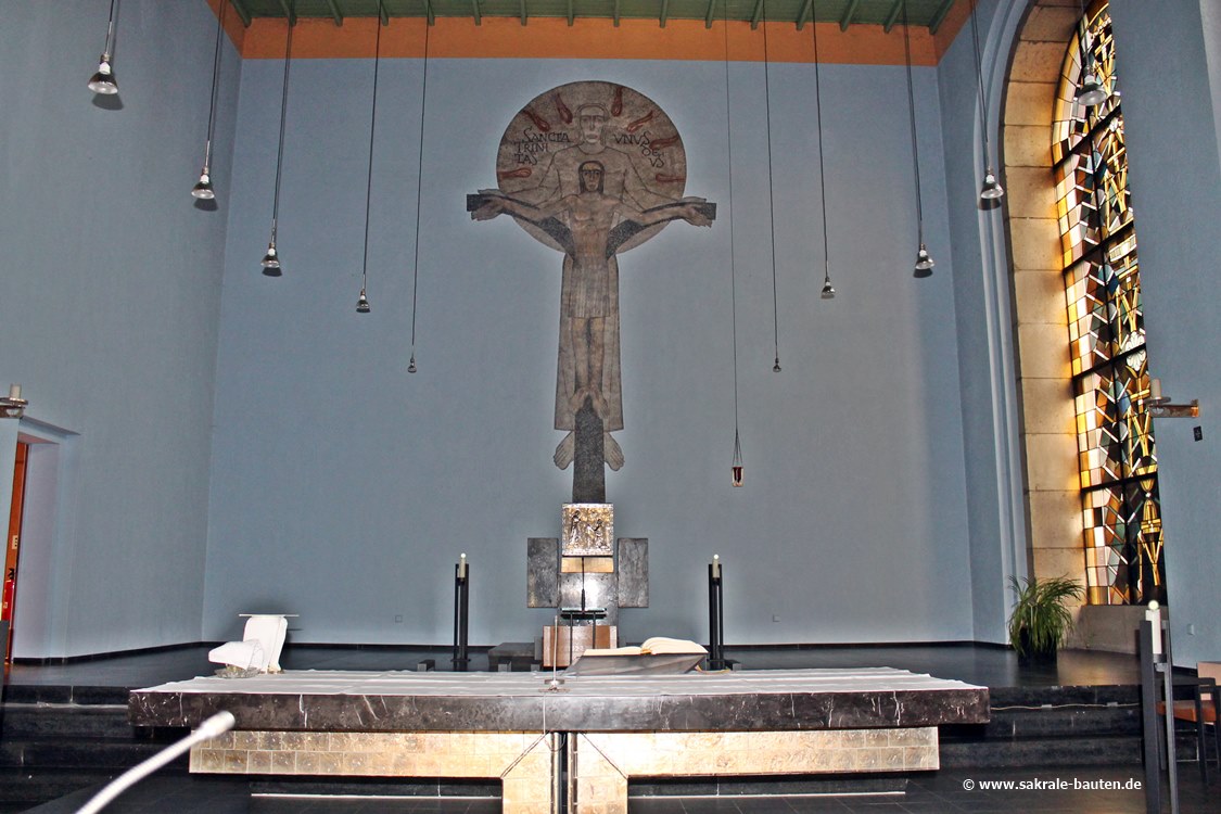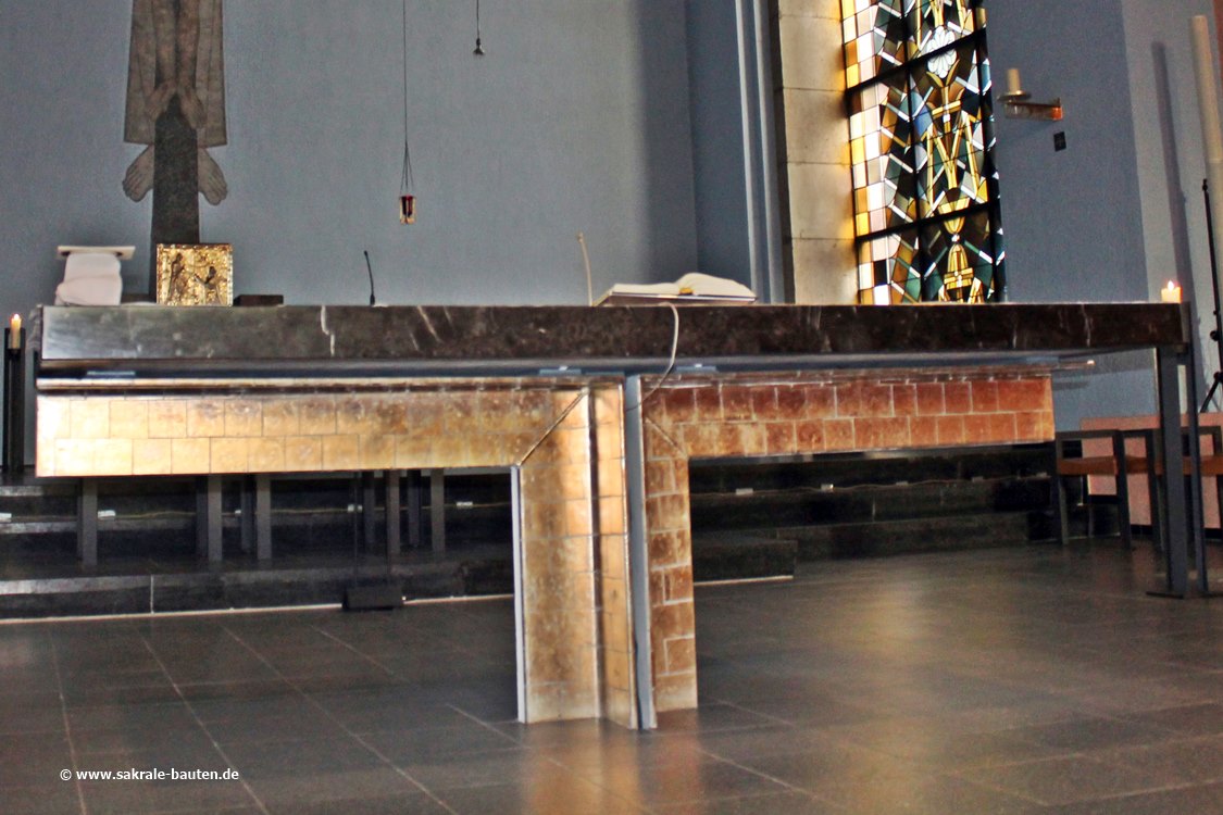 der im Zuge der Liturgiereform nachträglich nach vorne zur Gemeinde hin verlängert und mit einem neuen Altar versehen wurde. Der originale Blockaltartisch aus poliertem