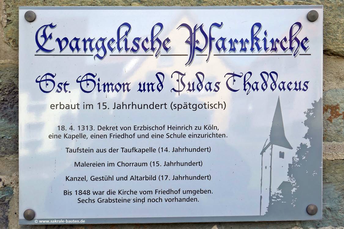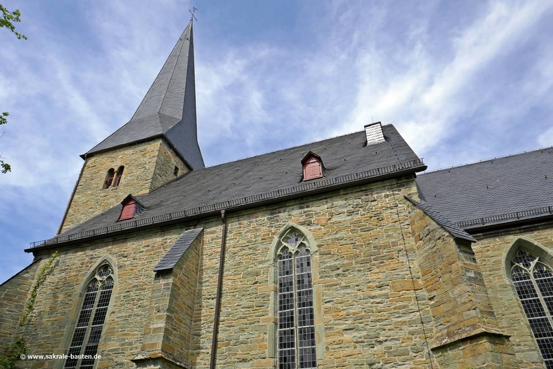 Die dreischiffige zweijochige Halle mit gerade geschlossenem, niedrigerem einjochigen Chor wurde wohl ab 1420 in hammerrechtem Bruchstein errichtet.