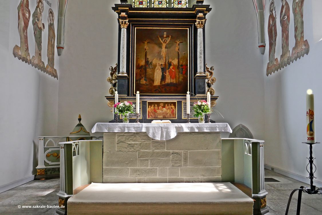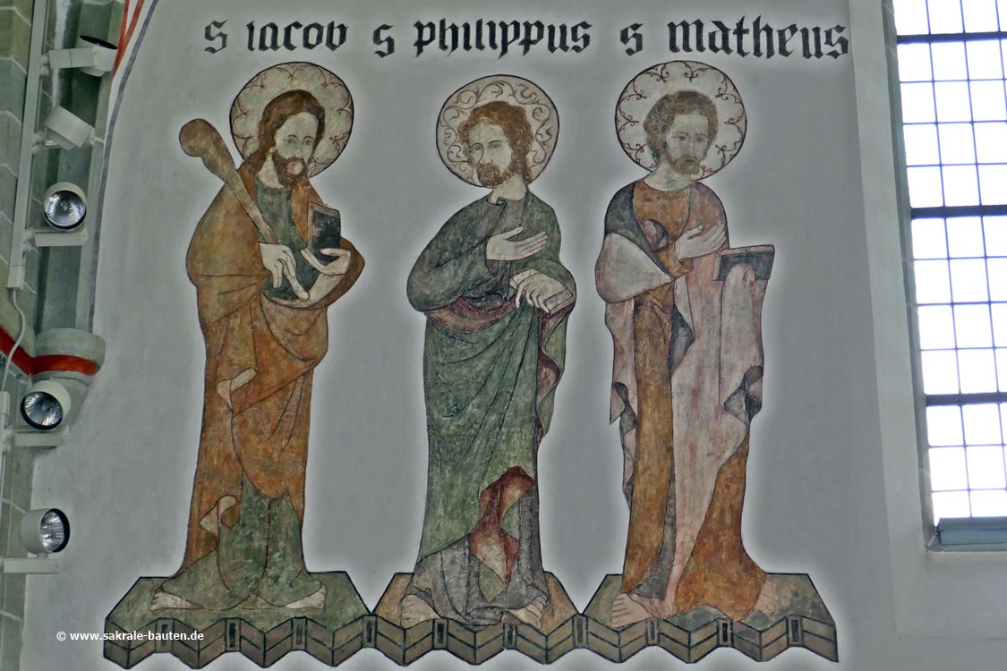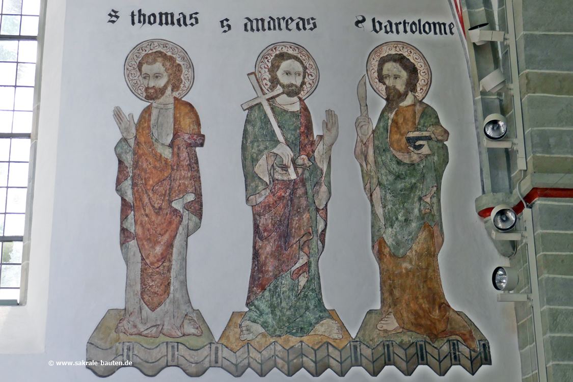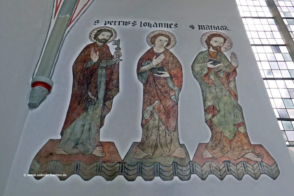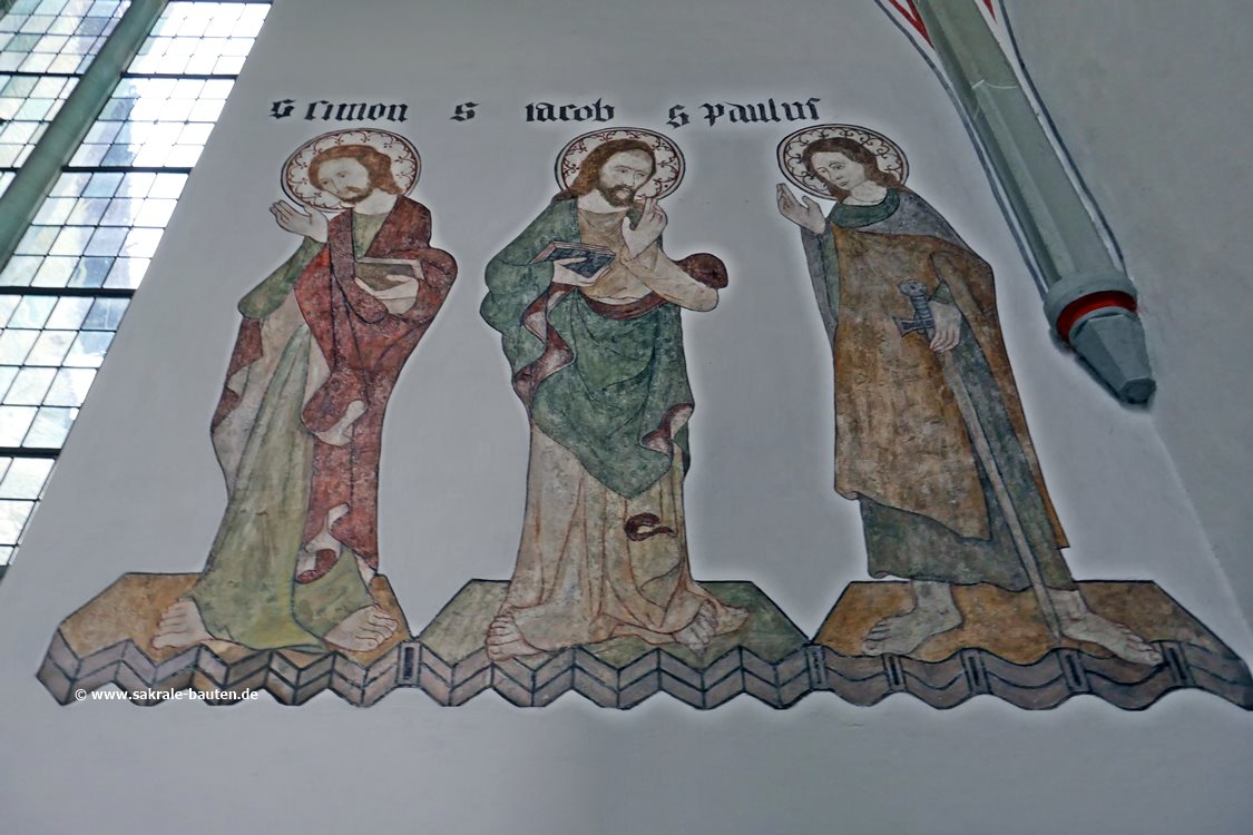 Die Wandmalereien im Chor vom Ende des 15. Jahrhunderts zeigen die 12 Apostel, sie wurden 1910 durch den Maler Ebeling aus Hannover bei einem Versuch