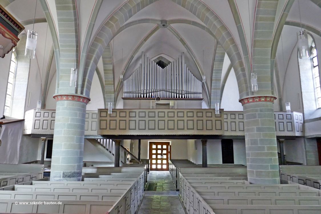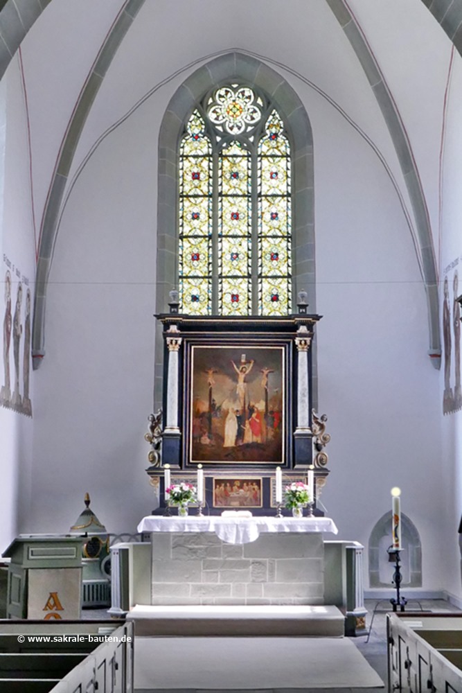 Der Innenraum wird, bedingt durch den verwendeten Soester Grünsandstein an Pfeilern und Gurtbögen, olivgrün. In dieser Farbe sind auch die Kirchenbänke angestrichen.