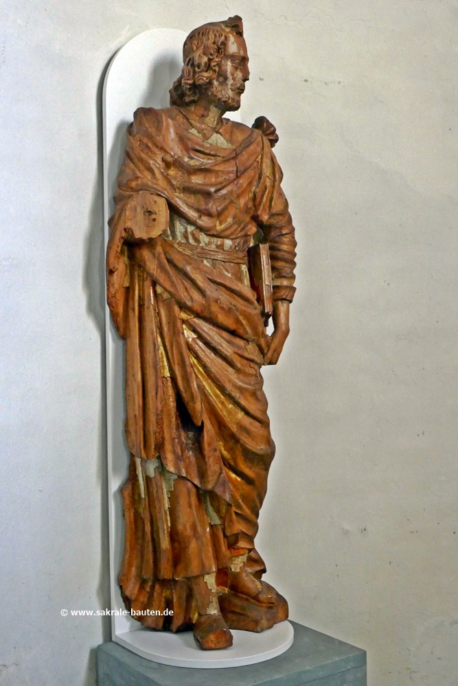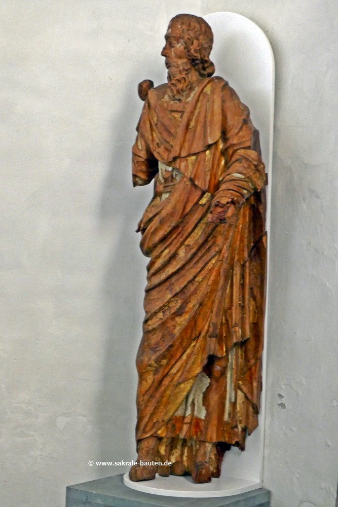 Von dem Barockaltar sind noch zwei geschnitzte Figuren der Apostel Petrus und Paulus erhalten. Sie wurden nach umfangreicher Restaurierung, 1996 im Chorraum aufgestellt.