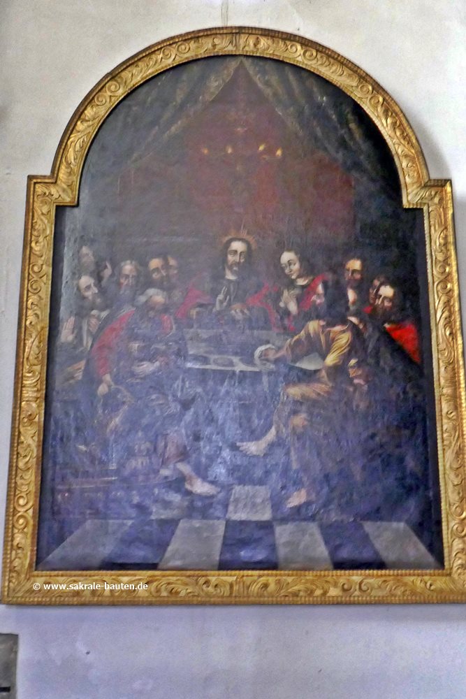 Bild 2: Das ehemalige Altarbild mit der Darstellung des Heiligen Abendmahles, hängt im südlichen Schiff an der Westwand.