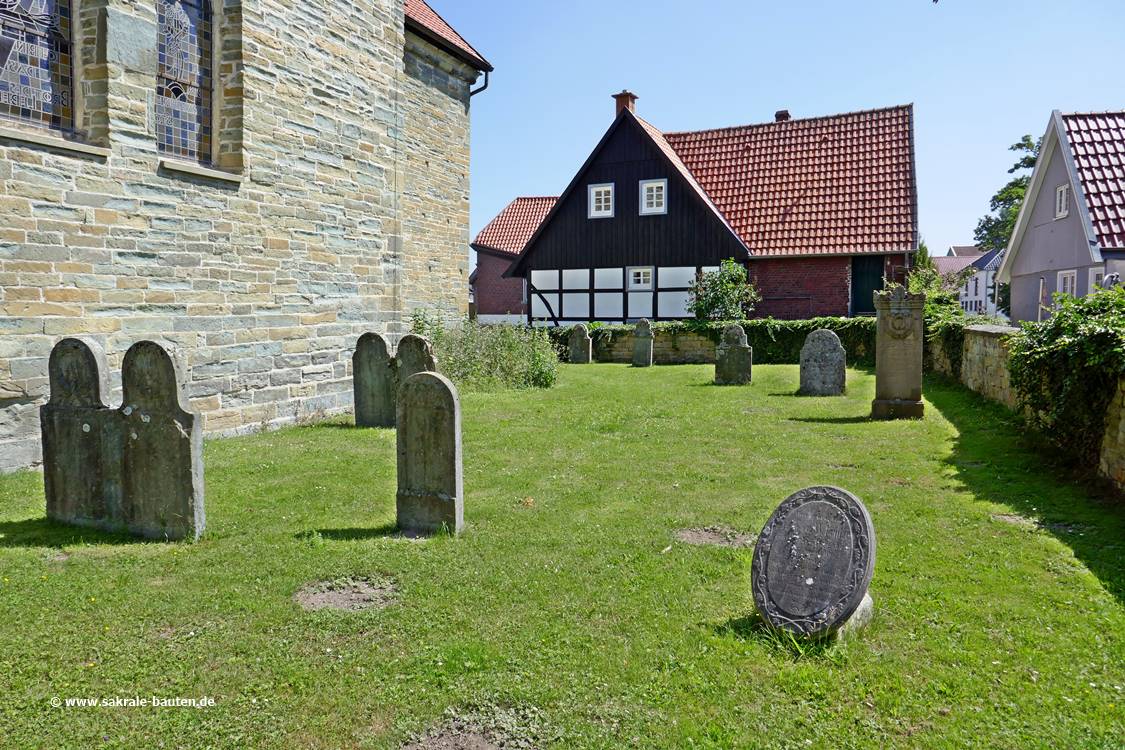 Die Kirche steht inmitten des alten Friedhofes, der mit seinen verschiedenartigen Grabsteinen und besonderem Bewuchs, als einer der schönen alten Friedhöfe in Westfalen gilt.