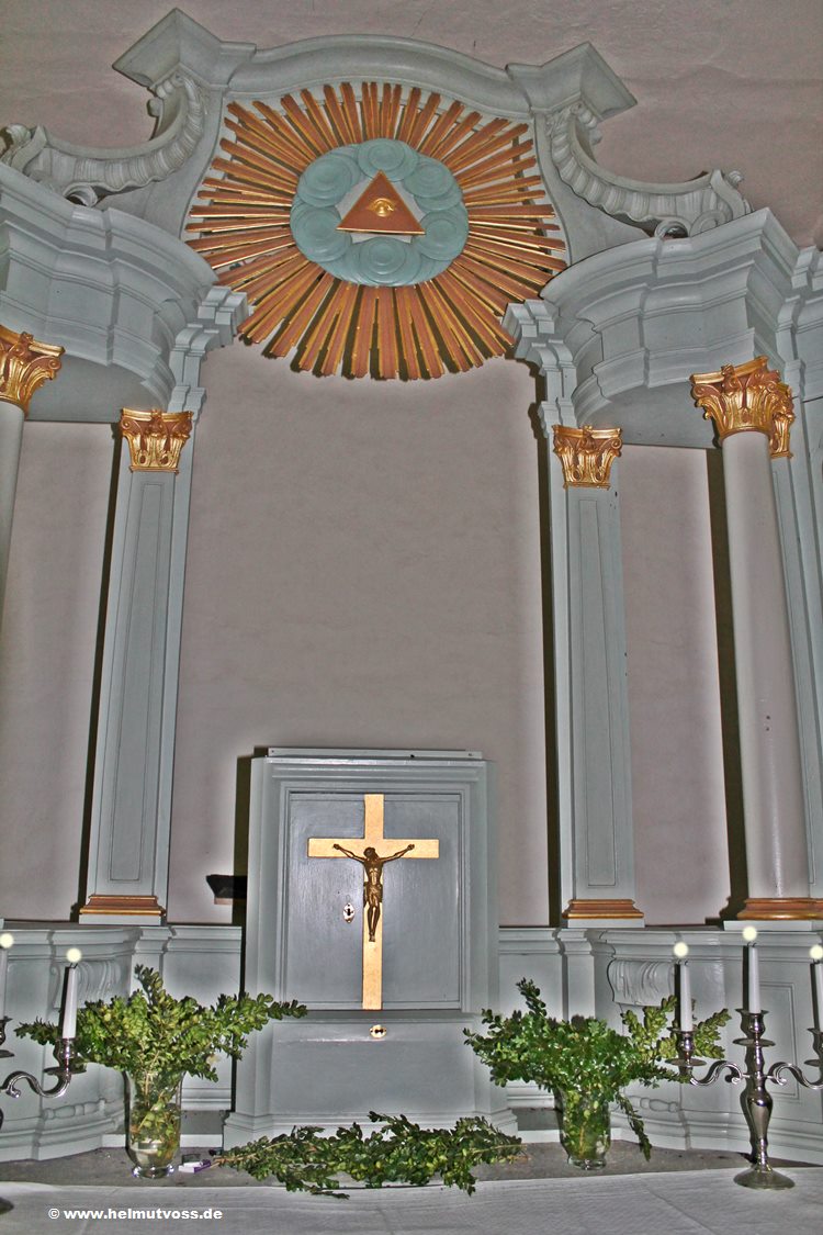 Das Altarretabel aus Eichenholz wurde im 18. Jahrhundert angefertigt. Auf ihm stehen (nur bei besonderen Anlässen) eine Pietà und die Figuren der Heiligen Urbanus und Agatha.