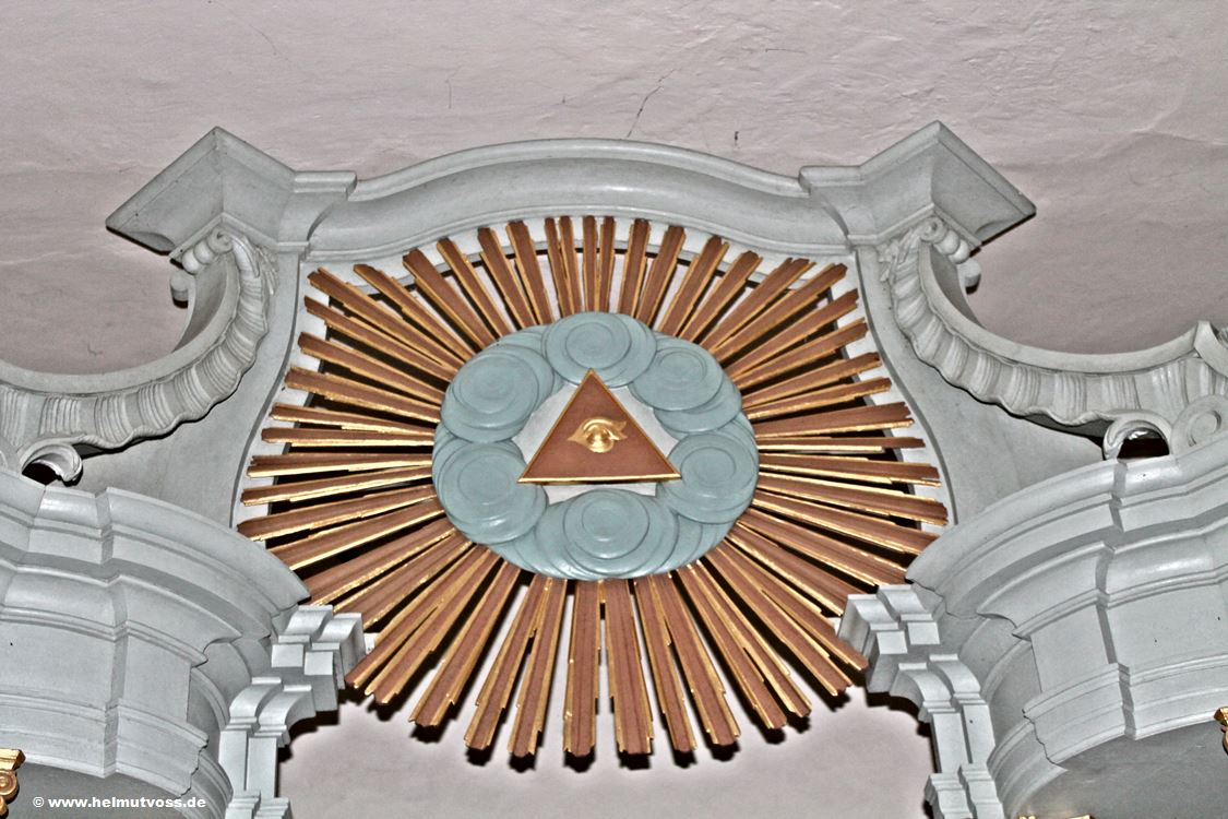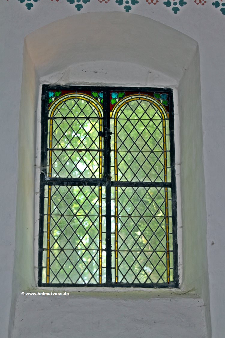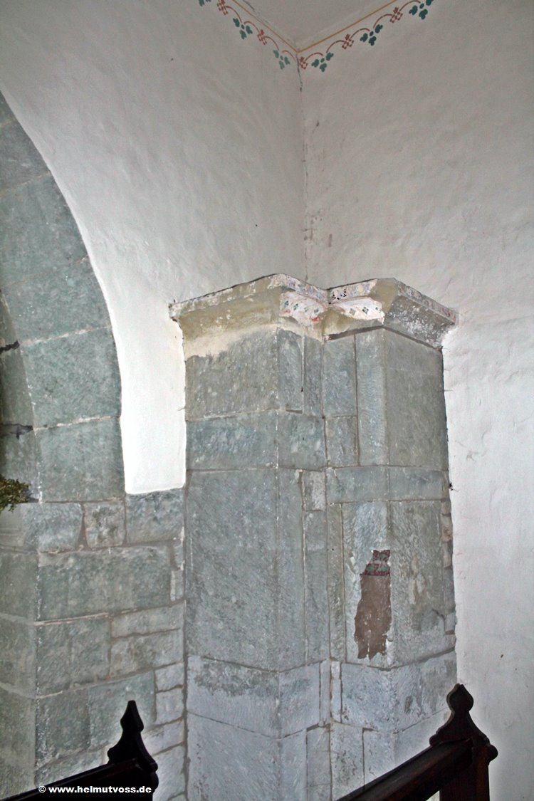 Im Westturm die Eichendecke und ein dezenter Rankenfries. Die Fenster wurden 1711 rechteckig vergrößert.