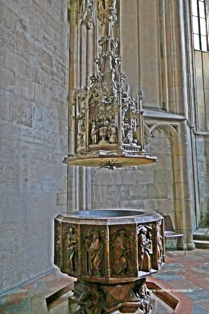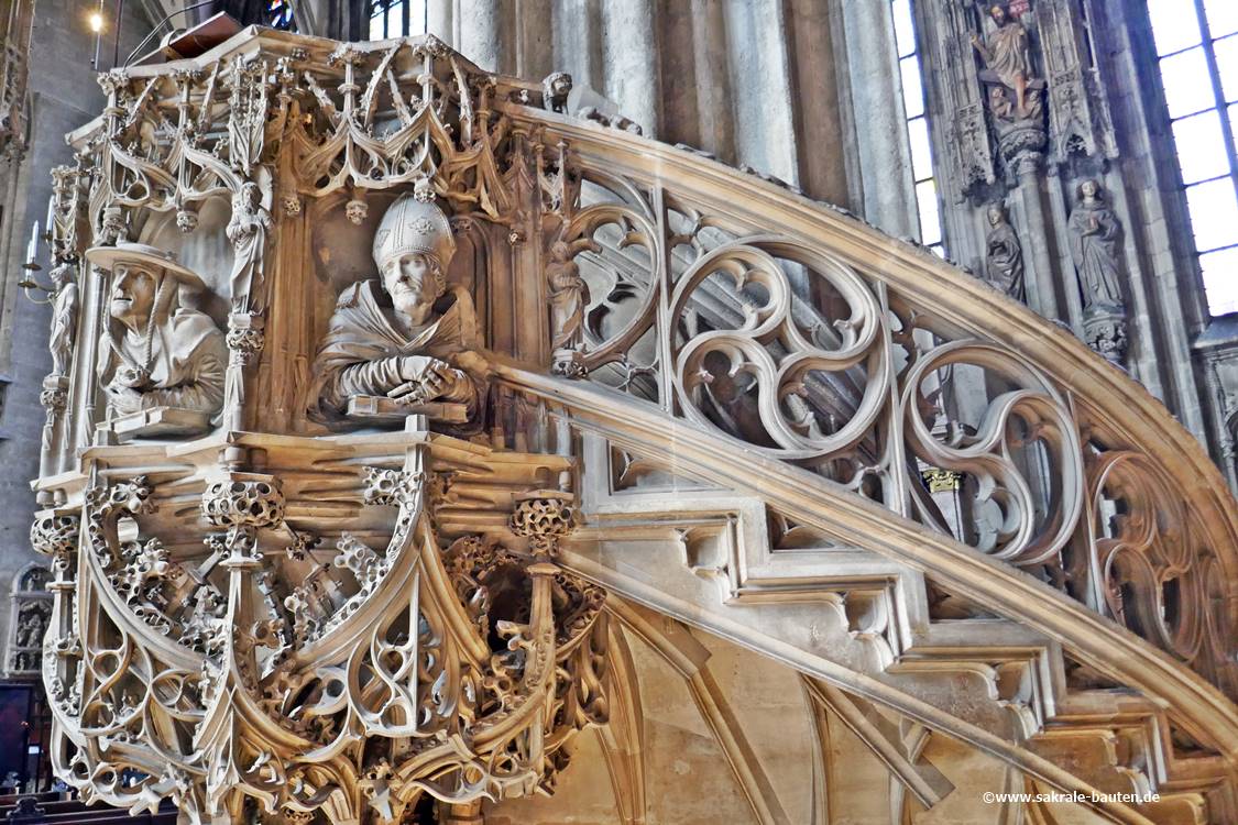 Ein weiteres Meisterwerk der spätgotischen Plastik ist die Kanzel aus Breitenbrunner Kalksandstein.