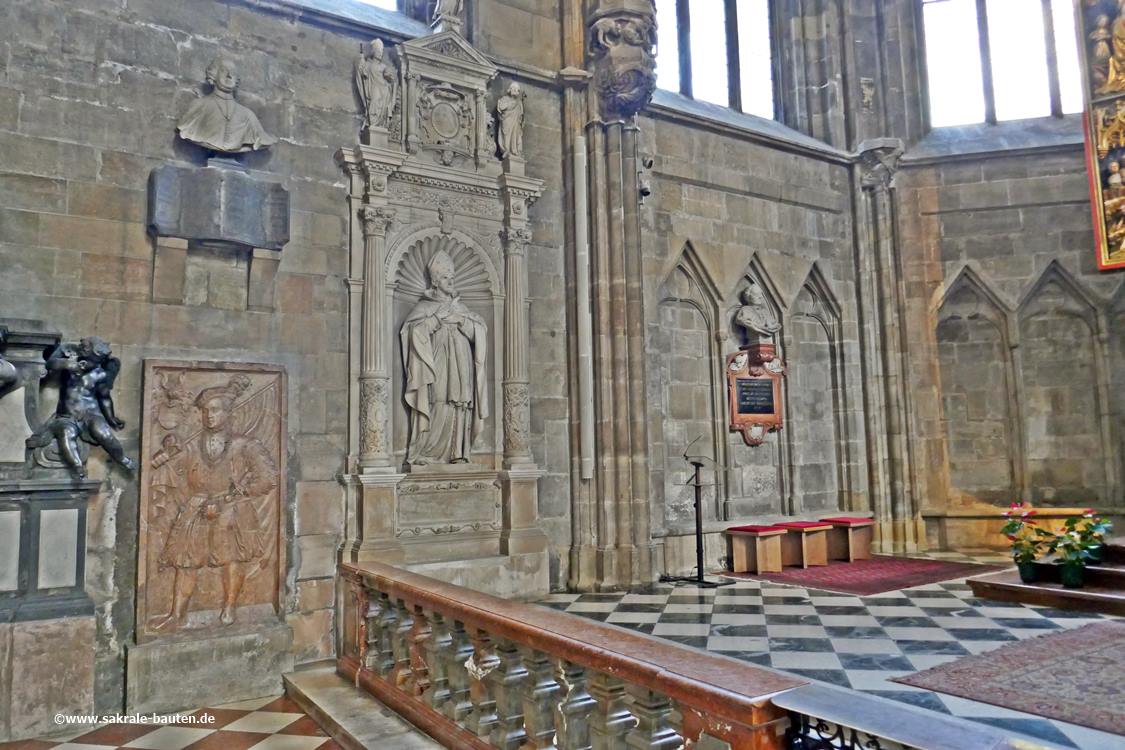 Im Inneren des Doms, an den Langhauswänden und in den Kapellen, findet man Epitaphien - skulpierte Grabdenkmäler,
