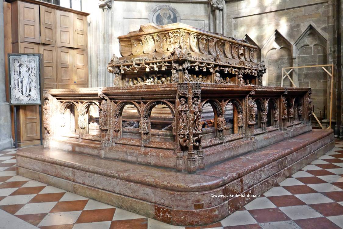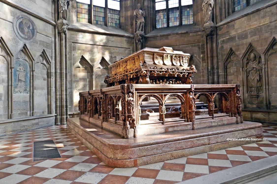 Majestätisch erhebt sich im Apostelchor das Grabmal Kaiser Friedrichs III., der im Jahr 1452 nach Rom zog, um sich vom Papst krönen zu lassen.