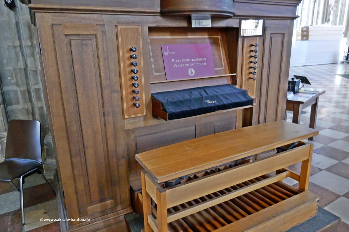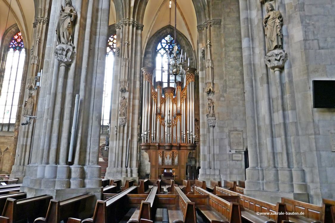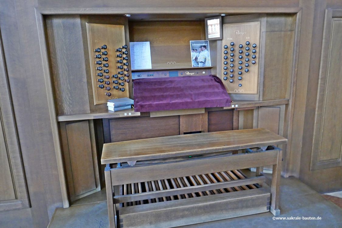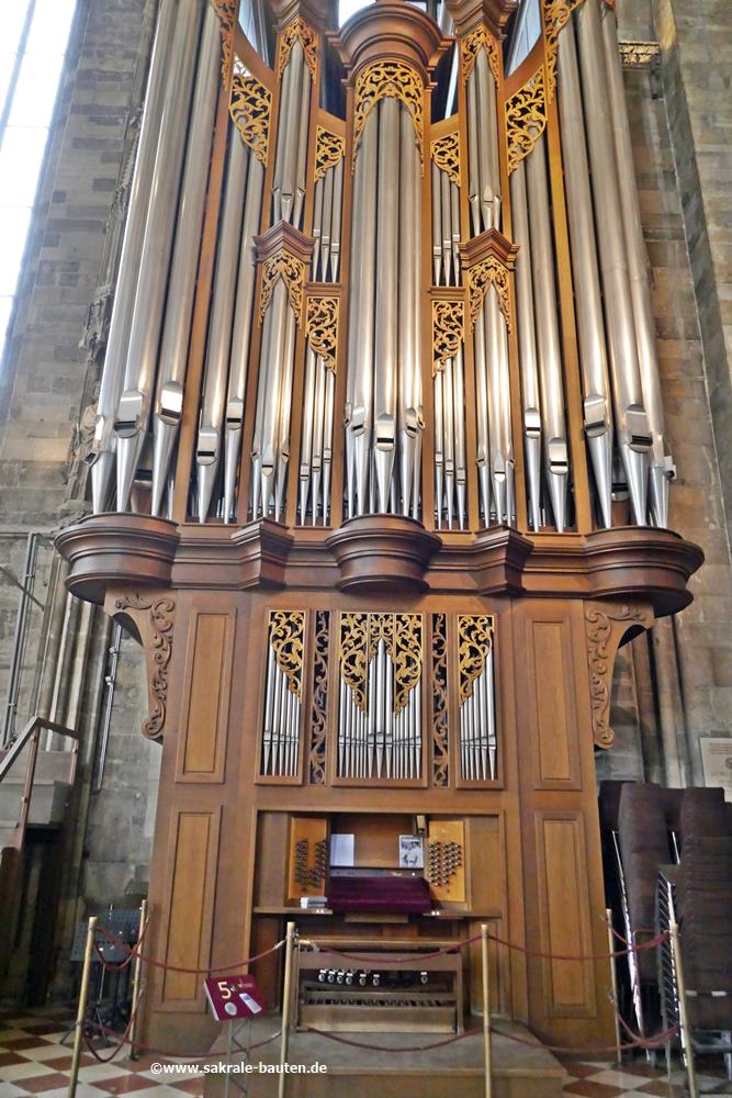 Orgel im Seitenschiff (Domorgel), erbaut von der Orgelbaufirma Rieger. Das Instrument hat 55 Register auf vier Manualen.
