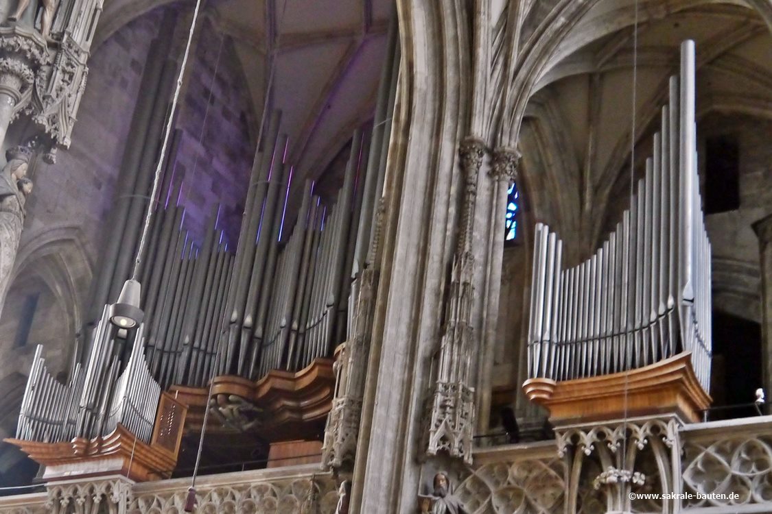 Kauffmann-Orgel (1960), auf der Westempore von St. Stephan stand bis 2017 die Monumentalorgel, die in den Jahren von 1956 bis 1960 von dem Wiener Orgelbauer