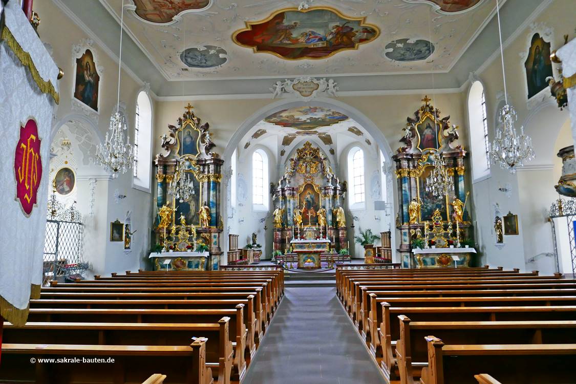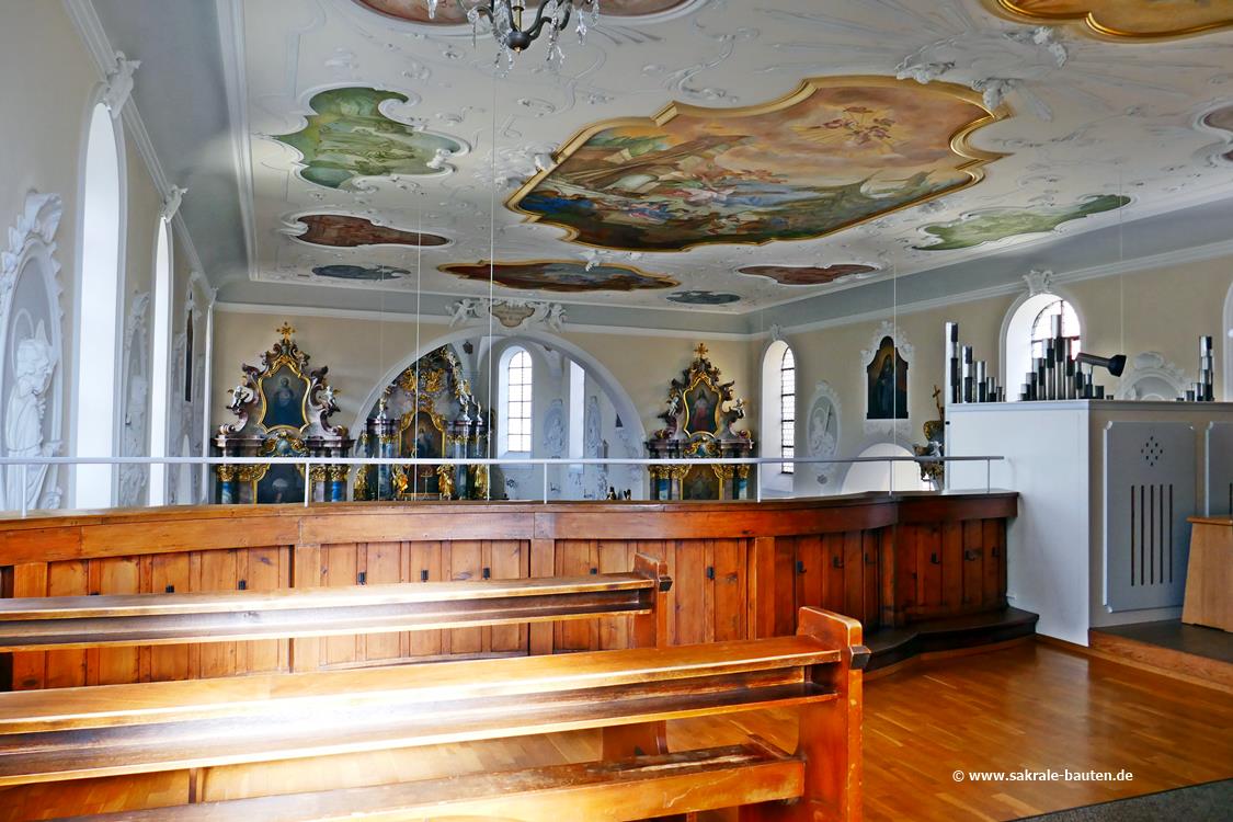Die Stuckaturen der Hohlkehle im Schiff und der Stichkappen im Chor fertigten Ludwig Kubanek und Hans Weißburger (1876–1951).