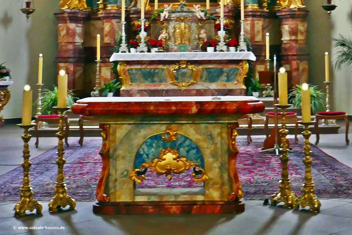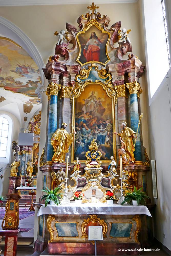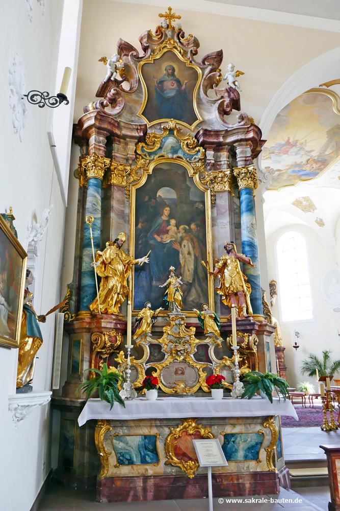 Bild 3: Der rechte Seitenaltar war ursprünglich dem heiligen Augustinus, wurde aber 1760 durch Peter Glunk dem heiligsten Herzen Jesu geweiht.