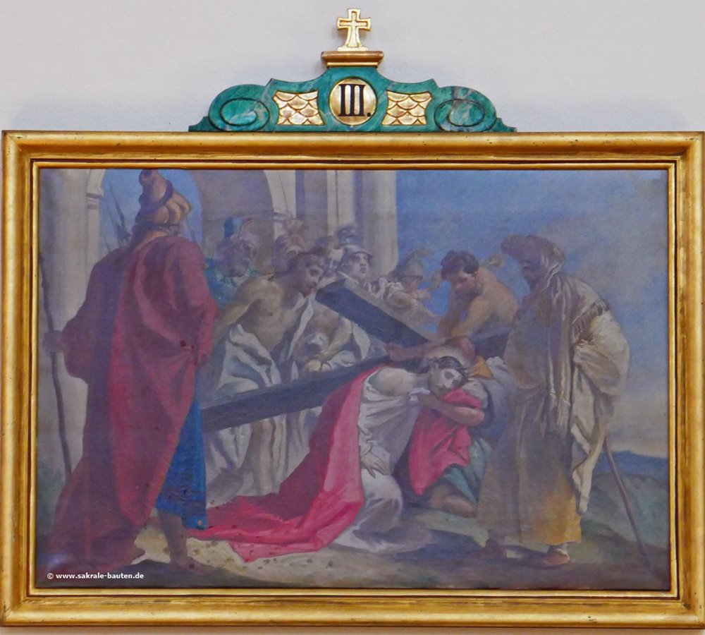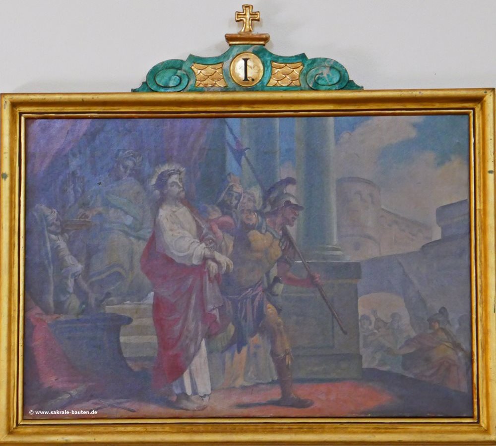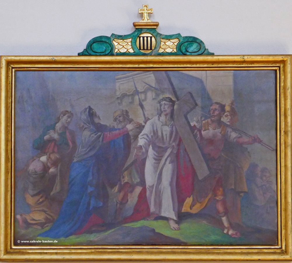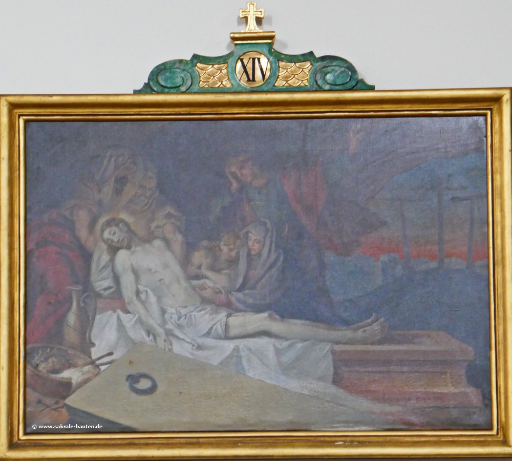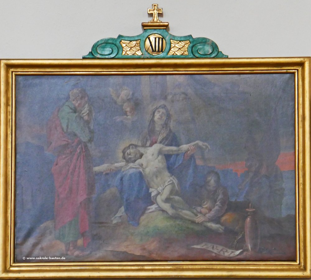 Die Kreuzwegbilder malte Kolmsperger. Die letzte Station ist signiert.