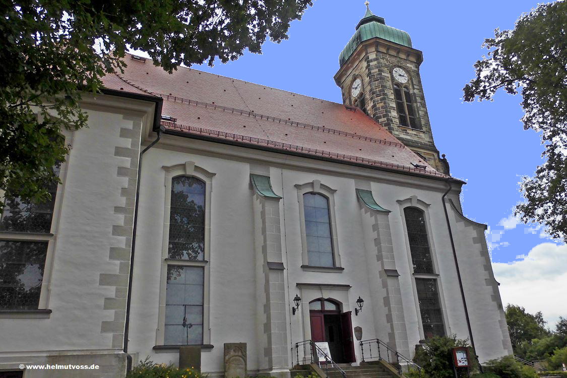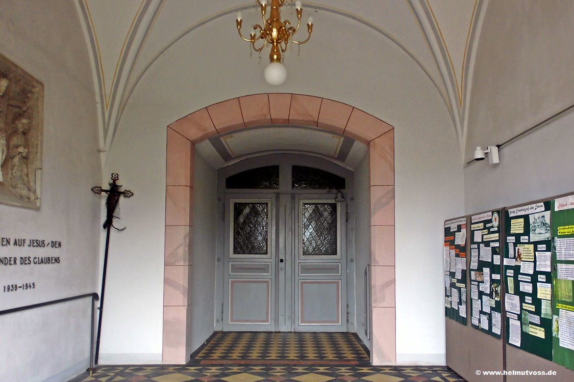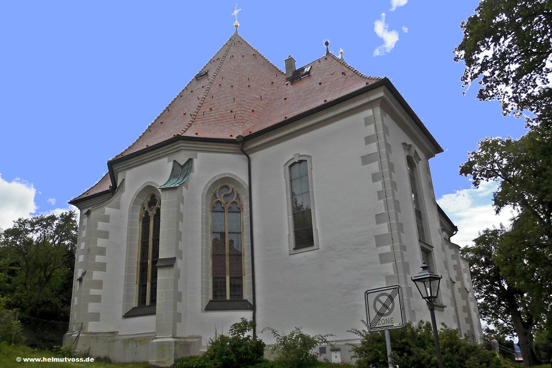 Um 1490 erbaut, ein spätgotisches Bauwerk mit 3/8 Chorabschluss mit Sternrippengewölbe. An- und Umbauten 1897-1900. Im Eingang die spätgotische Kreuzigung von1470.