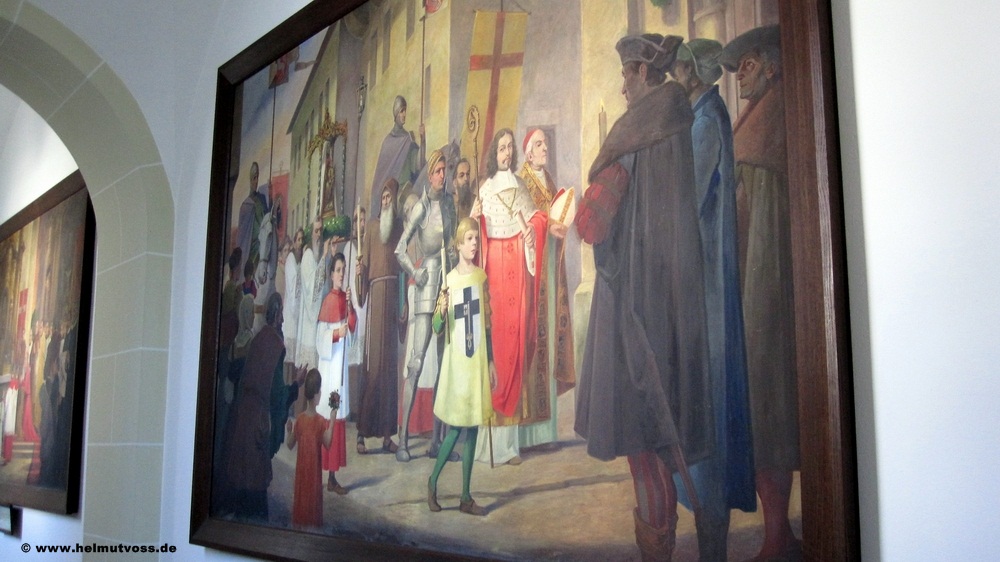 Die Bilder im Gang zum Kloster zeigen wie Erzbischof Maximilian Heinrich von Köln das Gnadenbild übergibt.