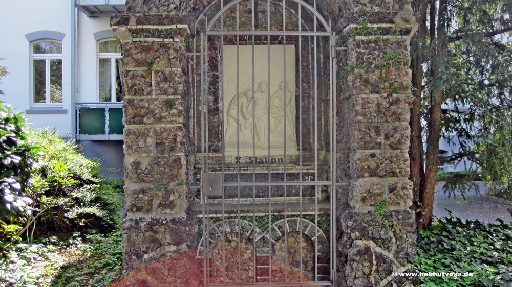 Die Kreuzweg-Stationen sind größtenteils von Pilgern und Pfarrgemeinden gestiftet. Bild oben rechts: Die X. Station. JESUS WIRD SEINER KLEIDER BERAUBT.