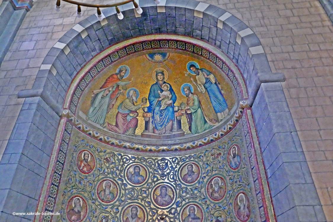Bild 2: Unterhalb des großen Mosaikbildes des Pantokrator-Christus, ein Werk der Beuroner Kunstschule,