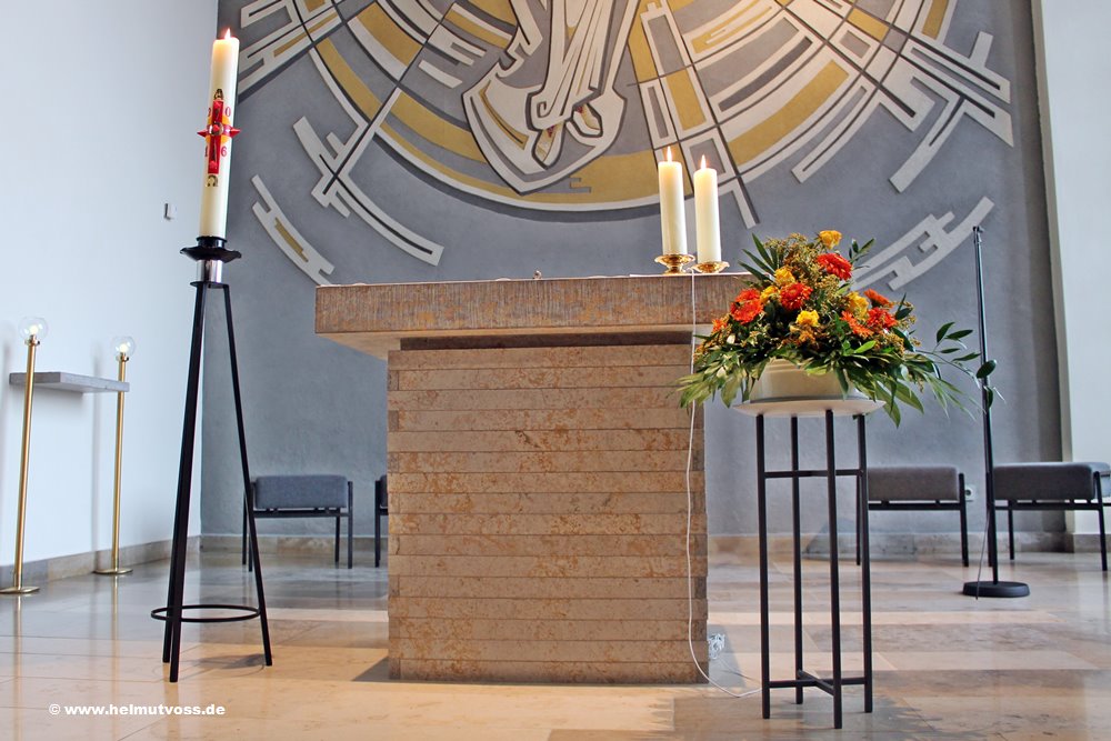 Der Kunstmaler Josef Niehaus entwarf das Chorbild, in Sgraffitotechnik.
