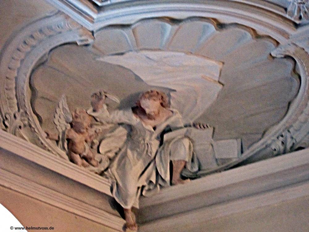 des weiteren sind stuckierte Prunkvasen mit Blumengirlanden sowie Puttenköpfe von Wolken eingerahmt zu sehen.