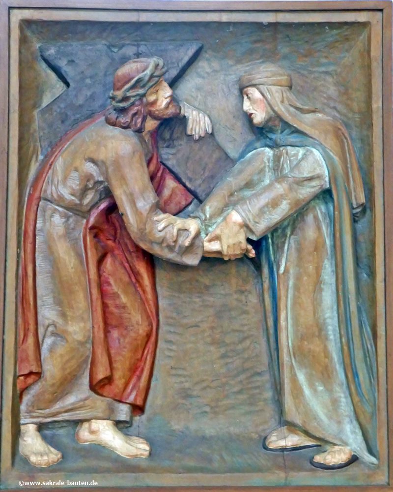 Die hier erwähnte Begegnung des Kreuz tragenden Jesus mit seiner Mutter hat keinen ausdrücklichen biblischen Hintergrund.