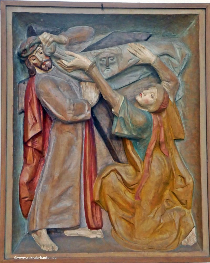 Auch diese Kreuzwegstation hat keinen biblischen Ursprung. Was das Bild ausdrückt Veronika ist eine sonst unbekannte Frau,