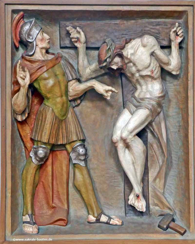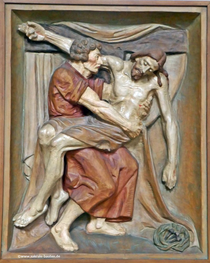 Die Kreuzwegstation heißt zwar "Jesus stirbt am Kreuz", doch das Bild zeigt den am Kreuz Gestorbenen,