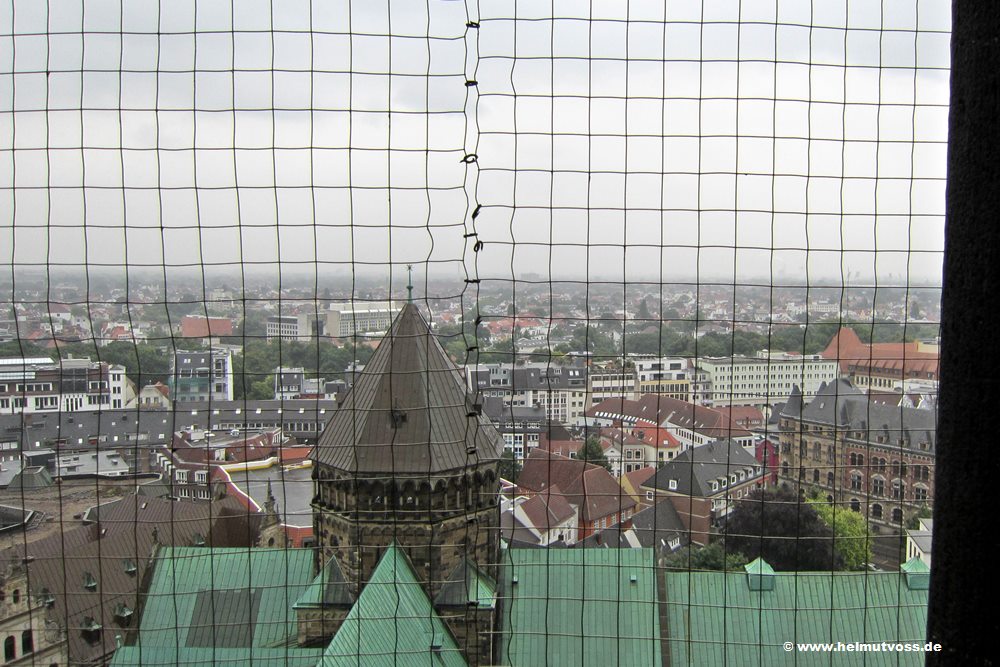 Hier sind wir im südlichen Turm des St. Petri Doms. 265 Stufen geht wie bei vielen alten Türmen eine gewendelte Treppe in einem schmalen Stiegenhaus hinauf.