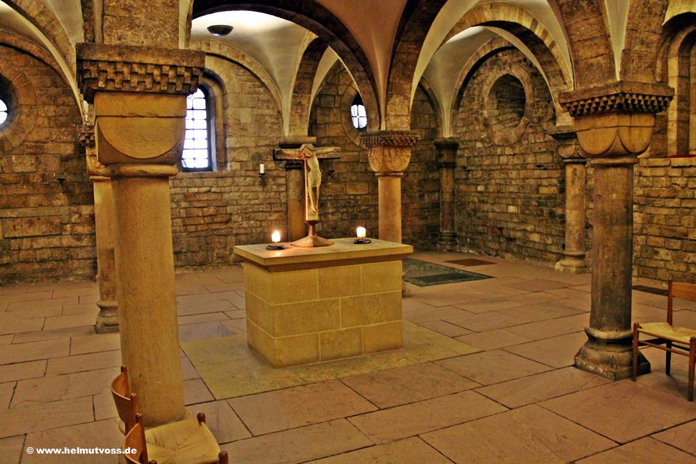 Links vom Hochchor, einige Stufen geht es herab zur Ostkrypta. "Raum der Stille" Dieser einheitlich frühsalische Raum ist in seiner ursprünglichen Bauweise unverändert geblieben.