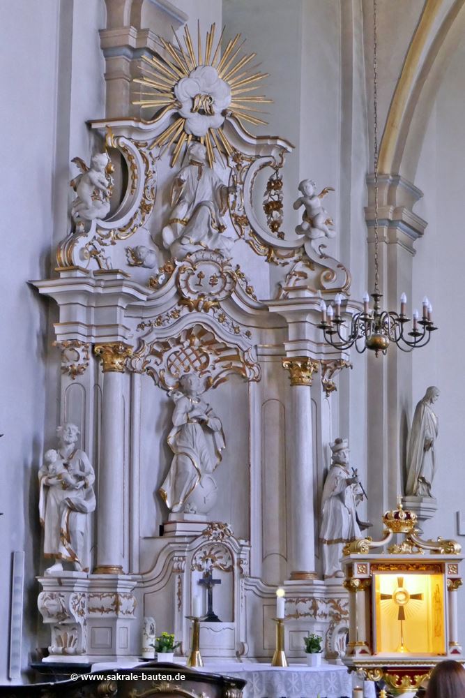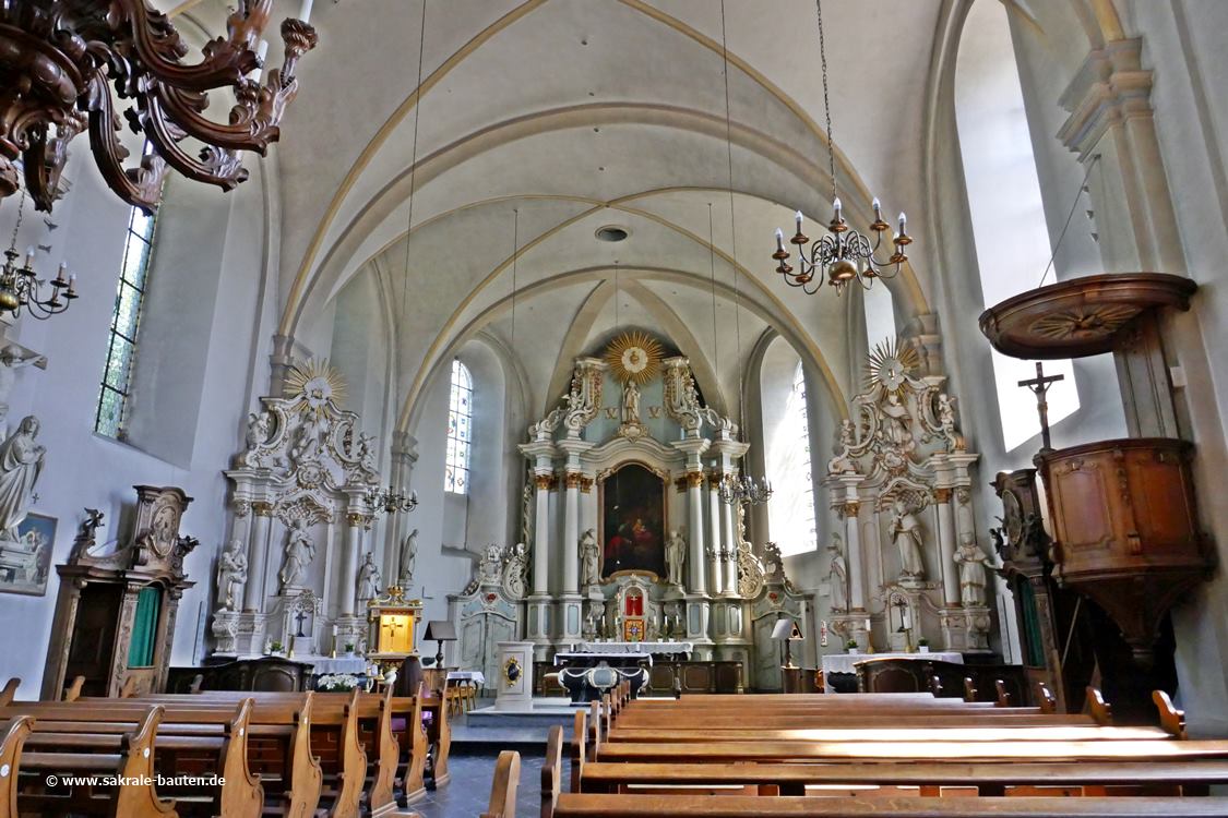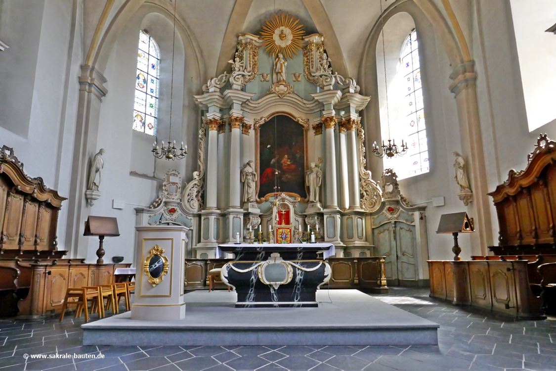 Der Chorraum wird durch den Hochaltar abgeschlossen. Dessen beherrschendes Element ist das zentrale Ölgemälde von Anton Joseph Stratmann (* 1734, † 1807)