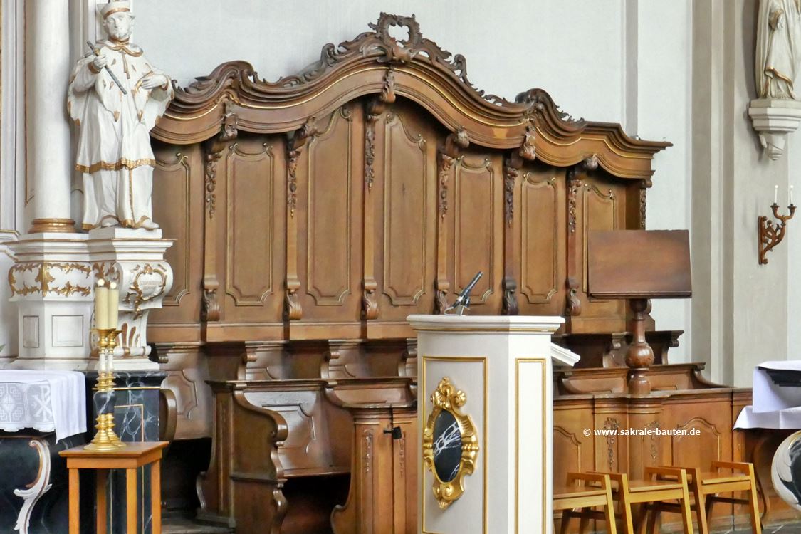 Im Bereich des Ostjochs ist beidseitig das aus Eiche geschnitzte Chorgestühl eingebaut. Es besteht aus jeweils zwei Reihen mit jeweils 14 Sitzen.