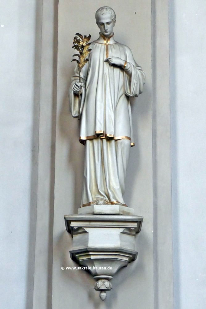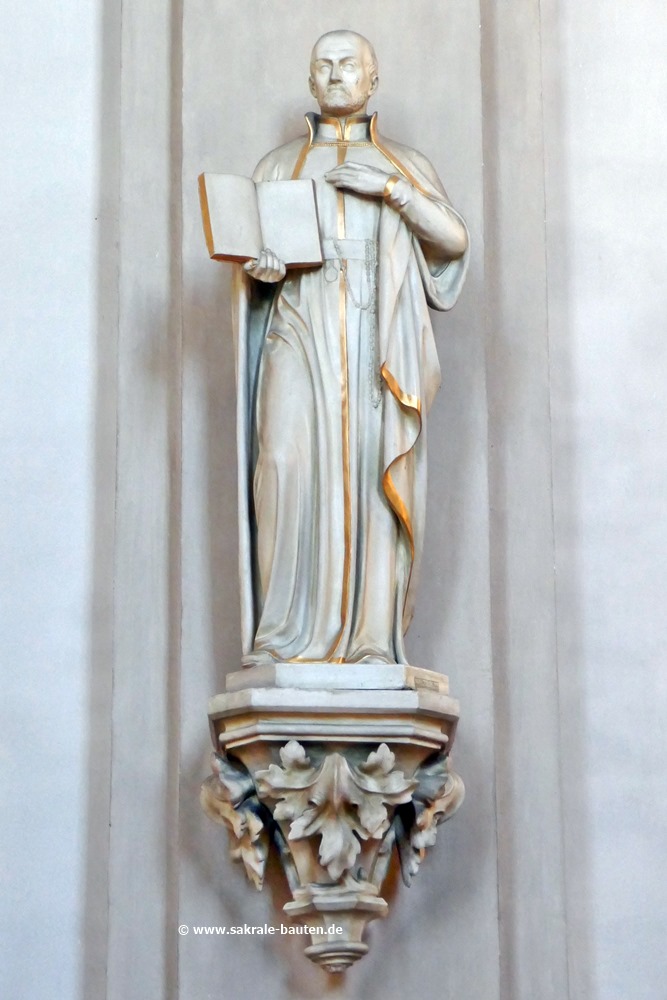 Auf den äußeren Konsolen stehen Figuren des heiligen Königs Ludwig (links) und des heiligen Bonaventura (rechts).