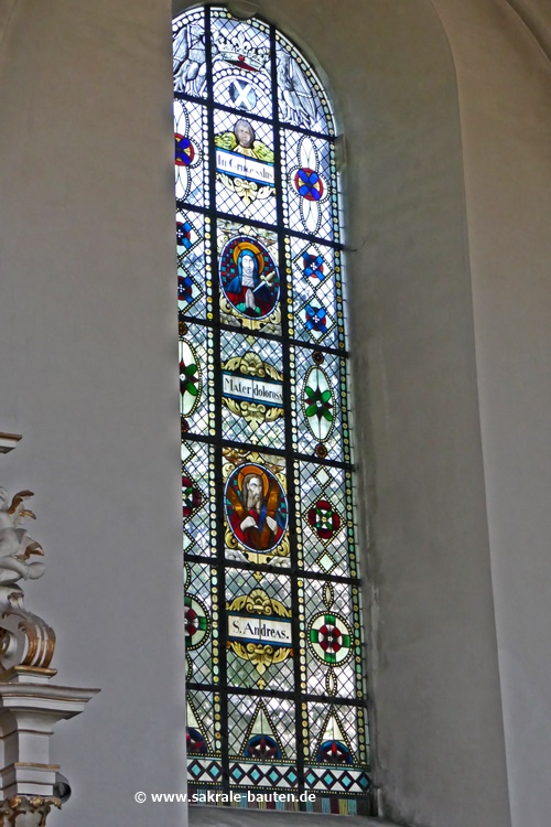 Bild 1: Ornament, in den Medaillons Mater dolorosa und St. Andreas. Fa. H. Becks, 1894.