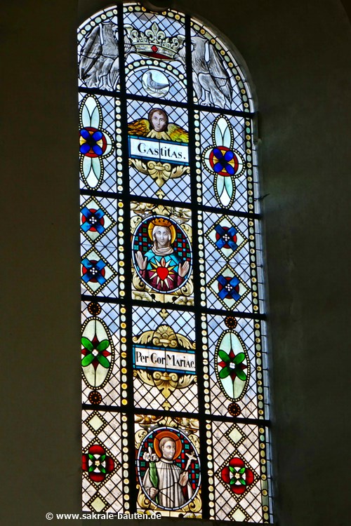 Bild 2: Ornament, in den Medaillons Herz Mariä und St. Aloysius von Gonzaga. Fa. H. Becks, 1894.