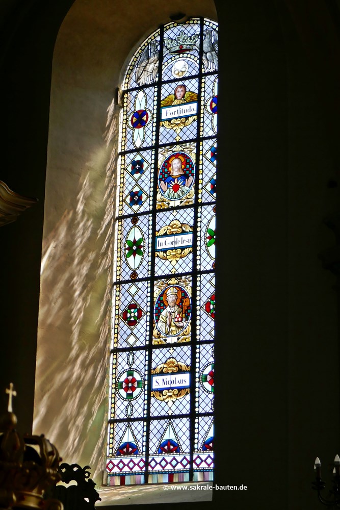 Bild 3: Ornament, in den Medaillons Herz Jesu und St. Nikolaus von Myra. Fa. H. Becks, 1894.