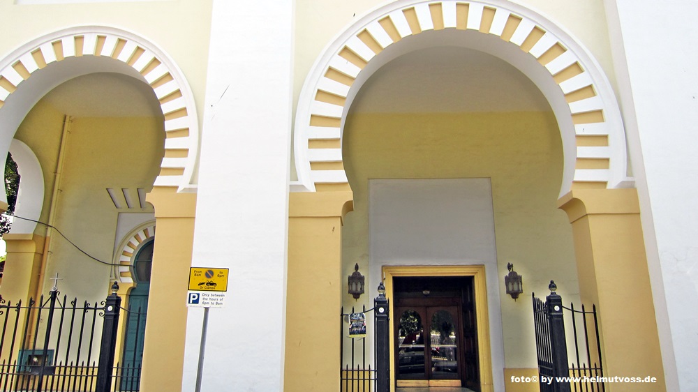 Bild 2: Haupteingang der Kathedrale der Heiligen Dreifaltigkeit gesehen vom Domplatz aus, hier die Darstellung seiner maurischen Hufeisenbögen.