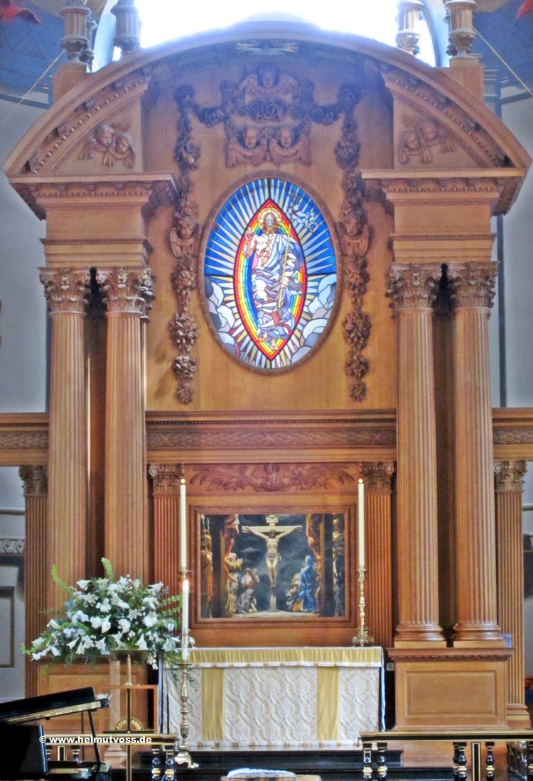 und die ovale Glasmalerei darüber.
