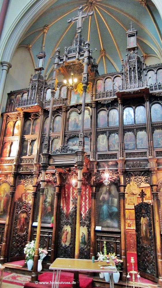 Die schöne Ikonostase (Altarwand) stammt aus einem Kloster in Bukarest, und wurde 1966 eingebaut.