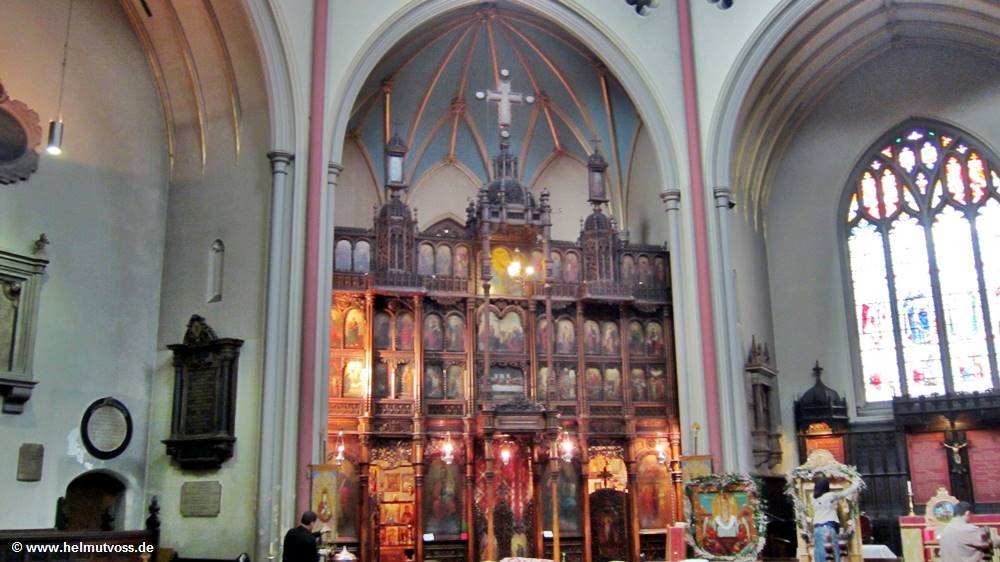 Der Hochaltar und Retabel sind flämischen Holzarbeiten aus dem siebzehnten Jahrhundert.