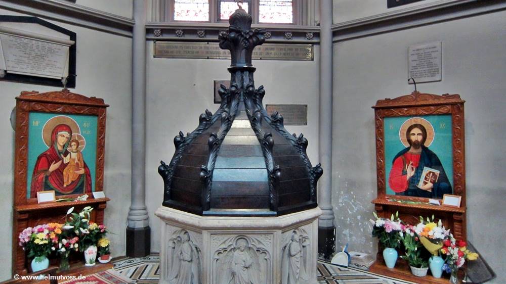 Er wurde in 1029 heilig gesprochen. Die Kirche sieht traditionell neugotischen an der Außenseite aus, doch innen ist sie achteckig.