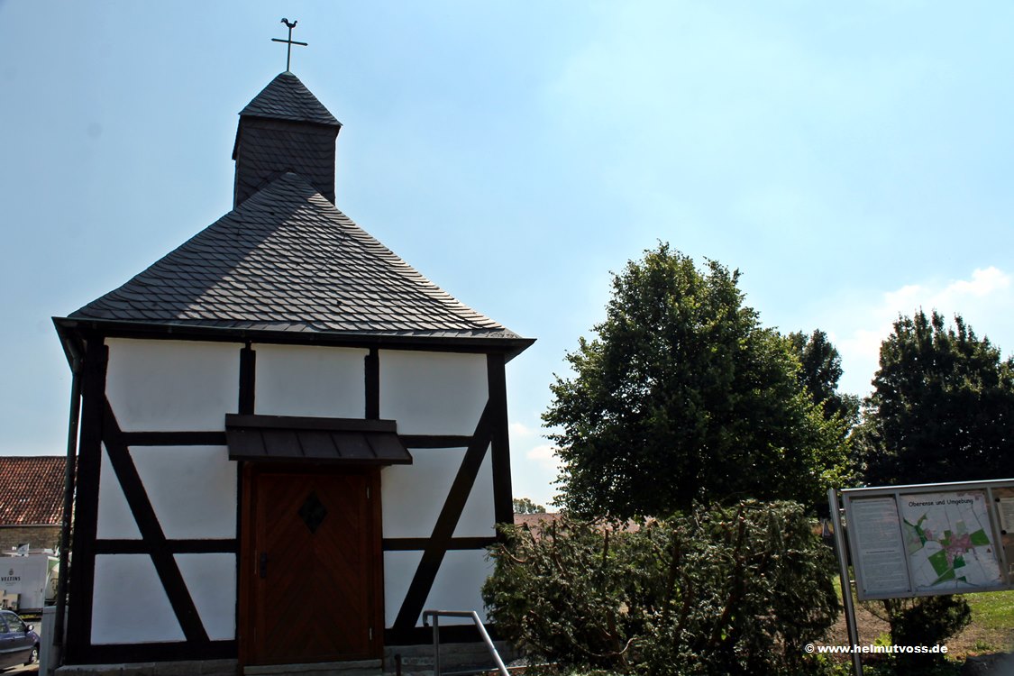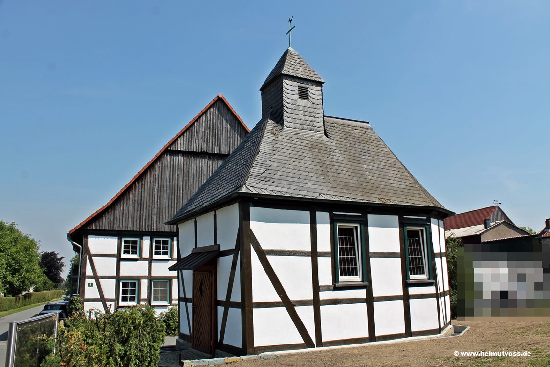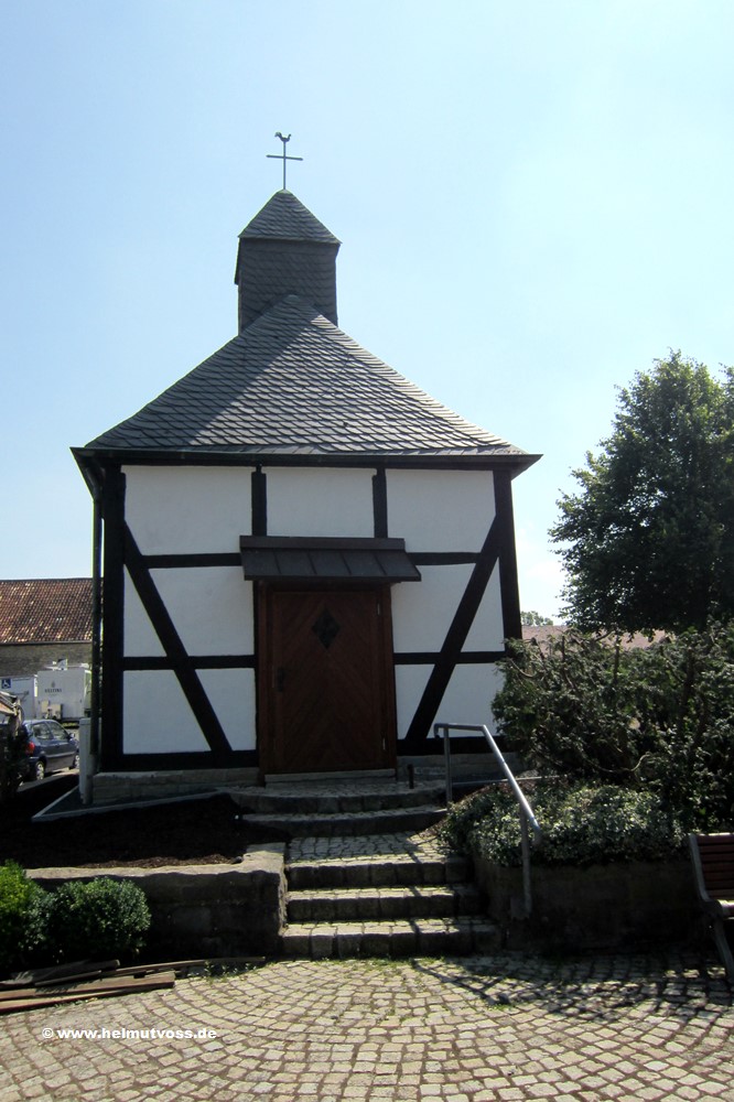 Die Fachwerkkapelle mit dreiseitigem Schluss wurde 1729 erbaut.