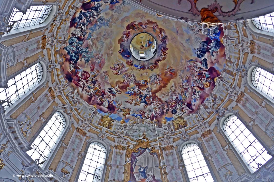 Das Kuppelfresko Johann Jakob Zeillers aus dem Jahr 1746 zeigt über einem Wolkenmeer die Entrückung