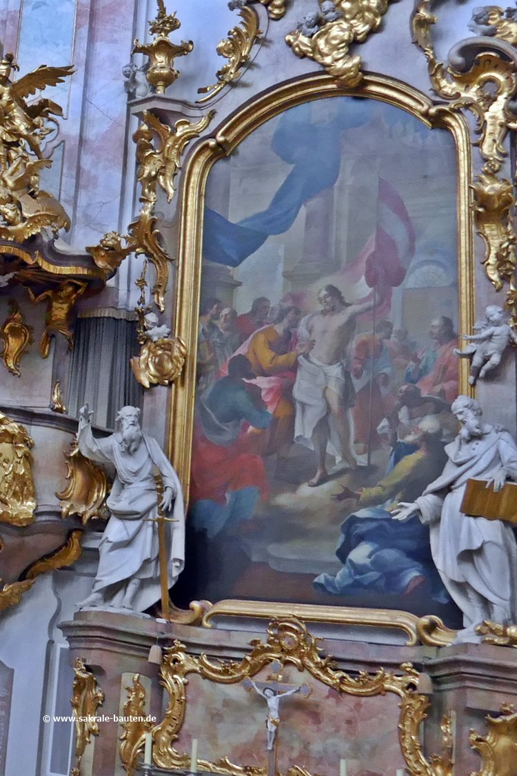 Bild 1: Das Altarbild von Franz Georg Hermann (1762) stellt den auferstandenen Christus dar, der dem Apostel Thomas seine Wunden zeigt.