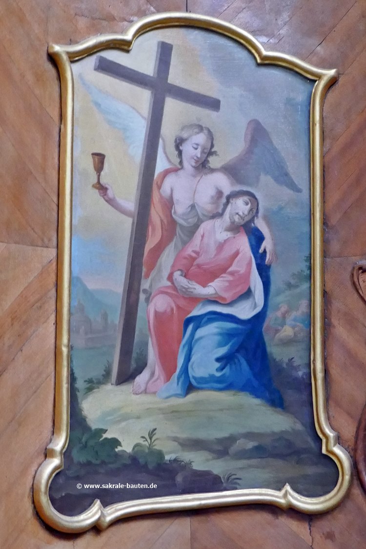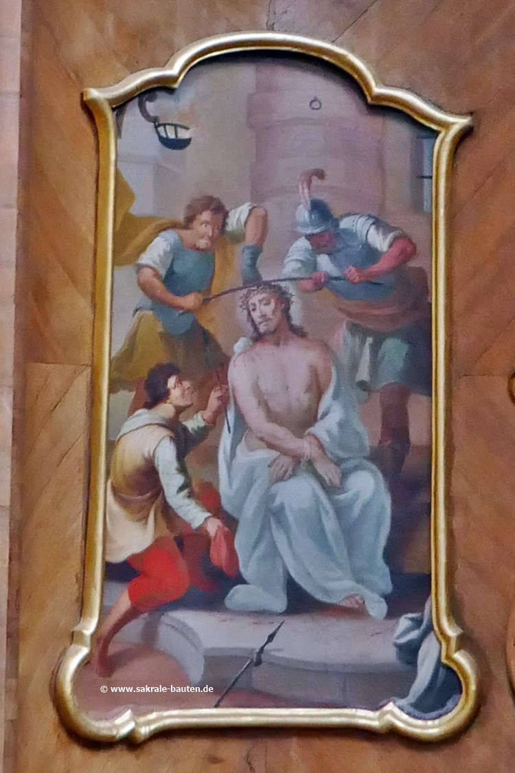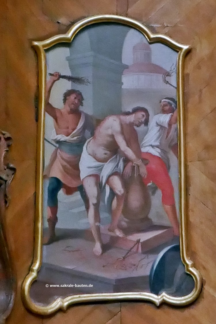 Bilder über den Kniebänken der Pönitenten zeigen Szenen aus der Passion Jesu.
