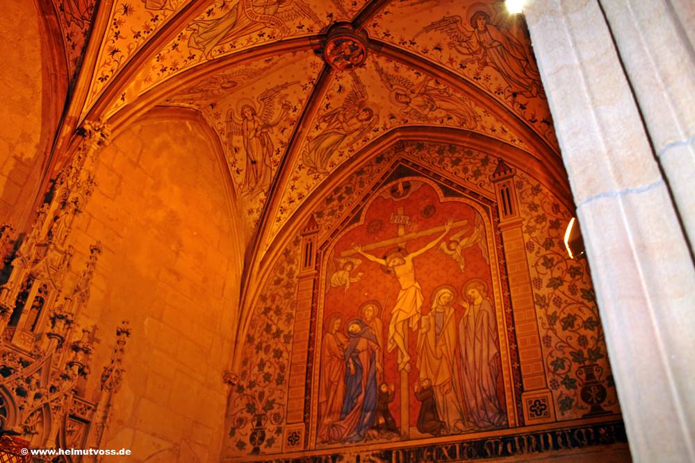 Links vor der gotischen Kapelle, nach sehr altem und wohlbegründetem kirchlichem Brauch werden in den Gottesdiensträumen Darstellungen des Herrn,